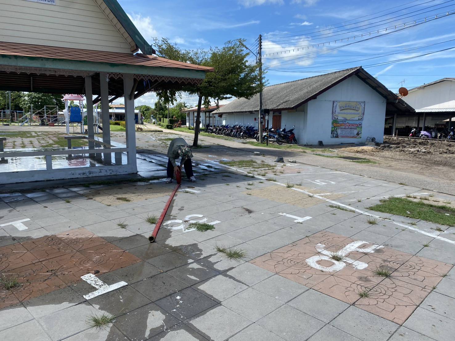 ได้ดำเนินการล้างทำความสะอาดศาลาบริเวรสวนหย่อม