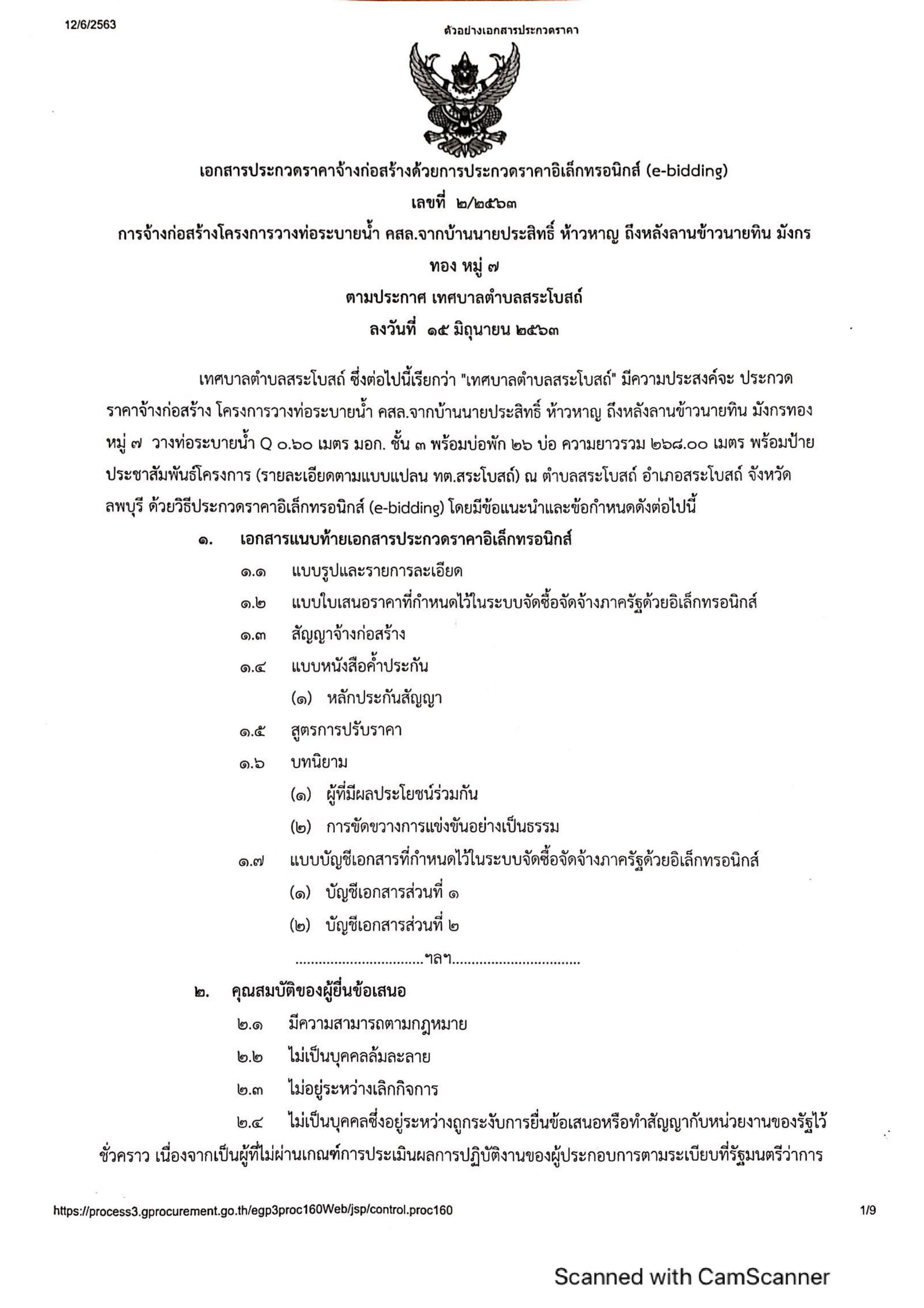ประกวดราคาจ้างก่อสร้างโครงการวางท่อระบายน้ำ คสล.จากบ้านนายประสิทธิ์ ห้าวหาญ ถึงหลังลานข้าวนายทิน มังกรทอง หมู่ 7 ด้วยวิธีประกวดราคาอิเล็กทรอนิกส์ (e-bidding)