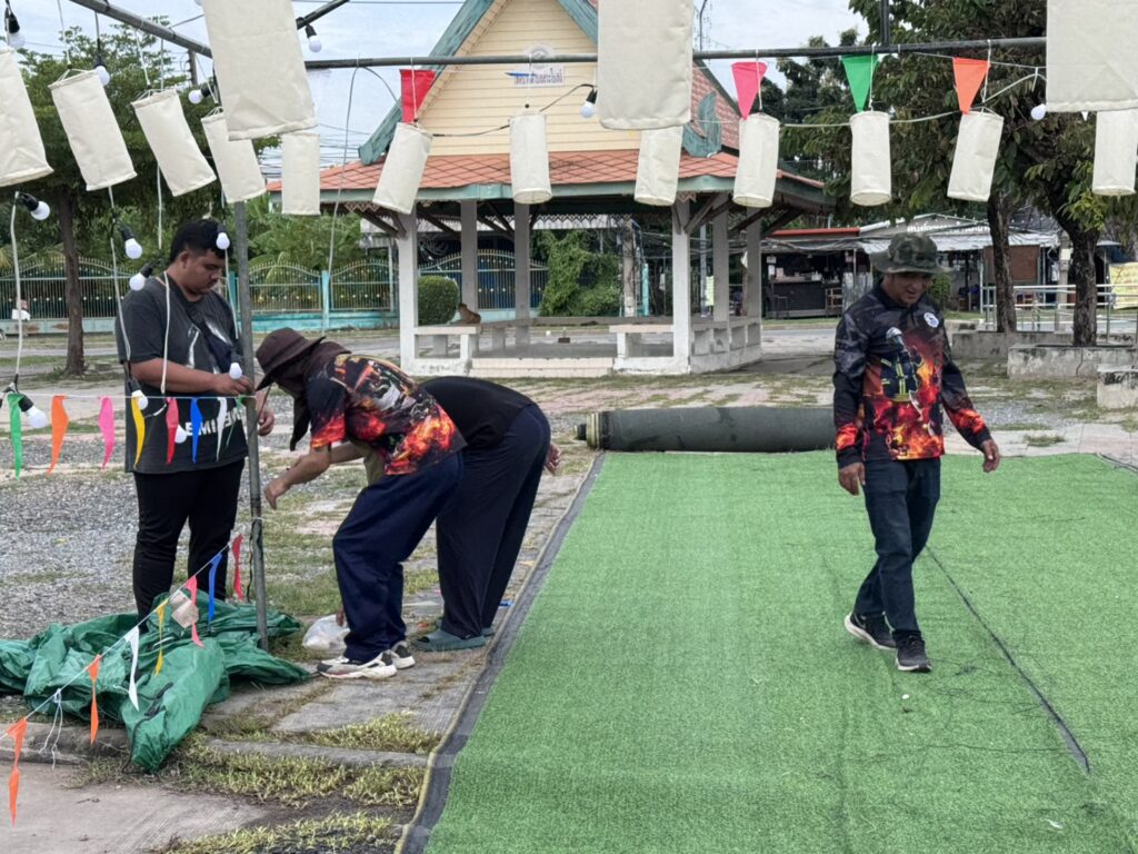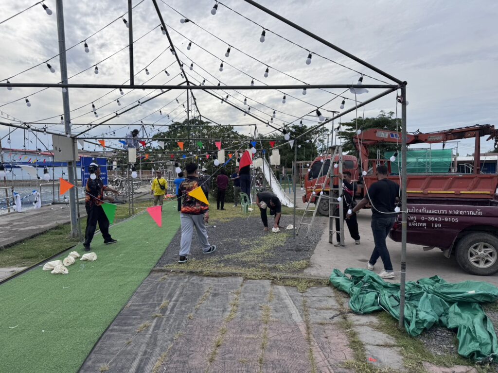 ได้ดำเนินการเก็บอุปกรณ์ต่างๆและ โครงเต็นท์ประดับแสงส่องสว่างใช่จัดงานประเพณีลอยกระทง