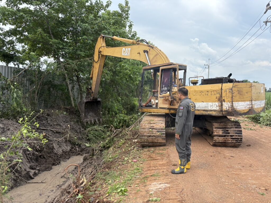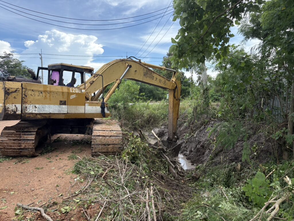 และเจ้าหน้าที่ป้องกันฯ ลงพื้นที่ลอกทางระบายน้ำพื้นที่ หมู่ 11
